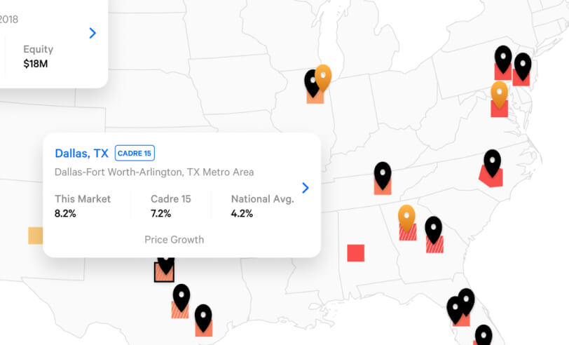 Millions of granular data points are ingested into Cadre’s real estate deal management software. These data insights provide a meaningful competitive edge, by enabling Cadre to more accurately identify trending locations and project rent growth. As a result, we can more quickly identify selective investment opportunities through our tech-enabled underwriting process.